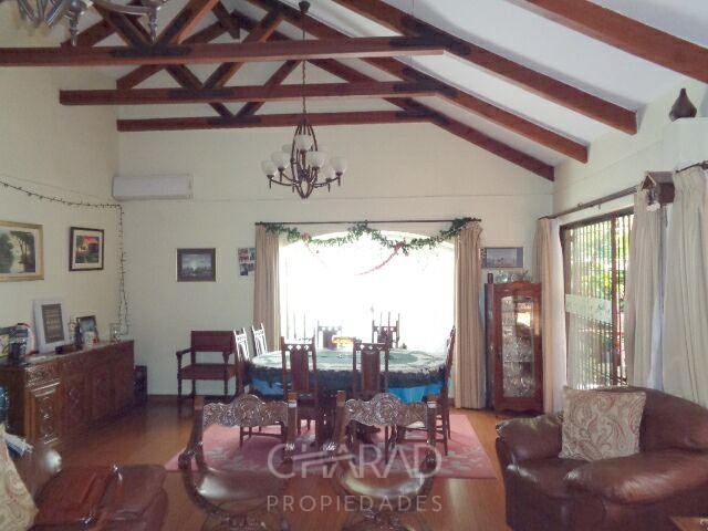Hall de Entrada: Amplio living-comedor con salida a terraza y jardín, cocina amoblada y equipada con comedor de diario, dependencias completas, lavandería, patio de servicio cerrado, departamento independiente con estar y un dormitorio.